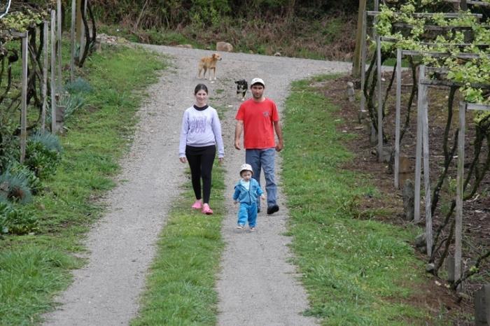 O agricultor Vanderlei Orso, 27 anos, também encara a estrada todas as manhãs. Ele, a esposa Gabriela e o pequeno Vítor, de um ano, se revezam entre as propriedades da família dele e dela. No distrito de Otávio Rocha, a 17 quilômetros do Centro de Flores, os pais de Vanderlei produzem e vendem uvas in natura, e na comunidade de Sete de Setembro, a sete quilômetros dali, a família de Gabriela cultiva uvas cobertas. A jovem família passa o dia na colônia e retorna à noite para casa.
