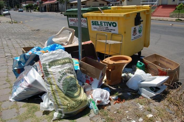 Além do acúmulo de material em alguns pontos do interior, é observa-se neste primeiro mês do ano verdadeiros depósitos dos mais diversos materiais, sendo que na maioria dos casos a coleta não é de responsabilidade da empresa contratada pela prefeitura. Lixo eletrônico, restos de obras, louças de banheiro, móveis, aparelhos de TV, lâmpadas e até mesmo pneus são encontrados com frequência próximos aos contêineres.