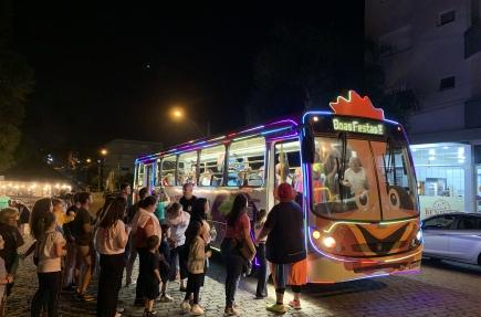 Tradicional atrativo do Natal em Flores da Cunha, o dindinho está de cara nova. O passeio gratuito pelas decorações do município agora é feito no ônibus da Câmara de Dirigentes Lojistas de Flores da Cunha (CDL), apresentado durante o Piquenique Noturno em novembro.