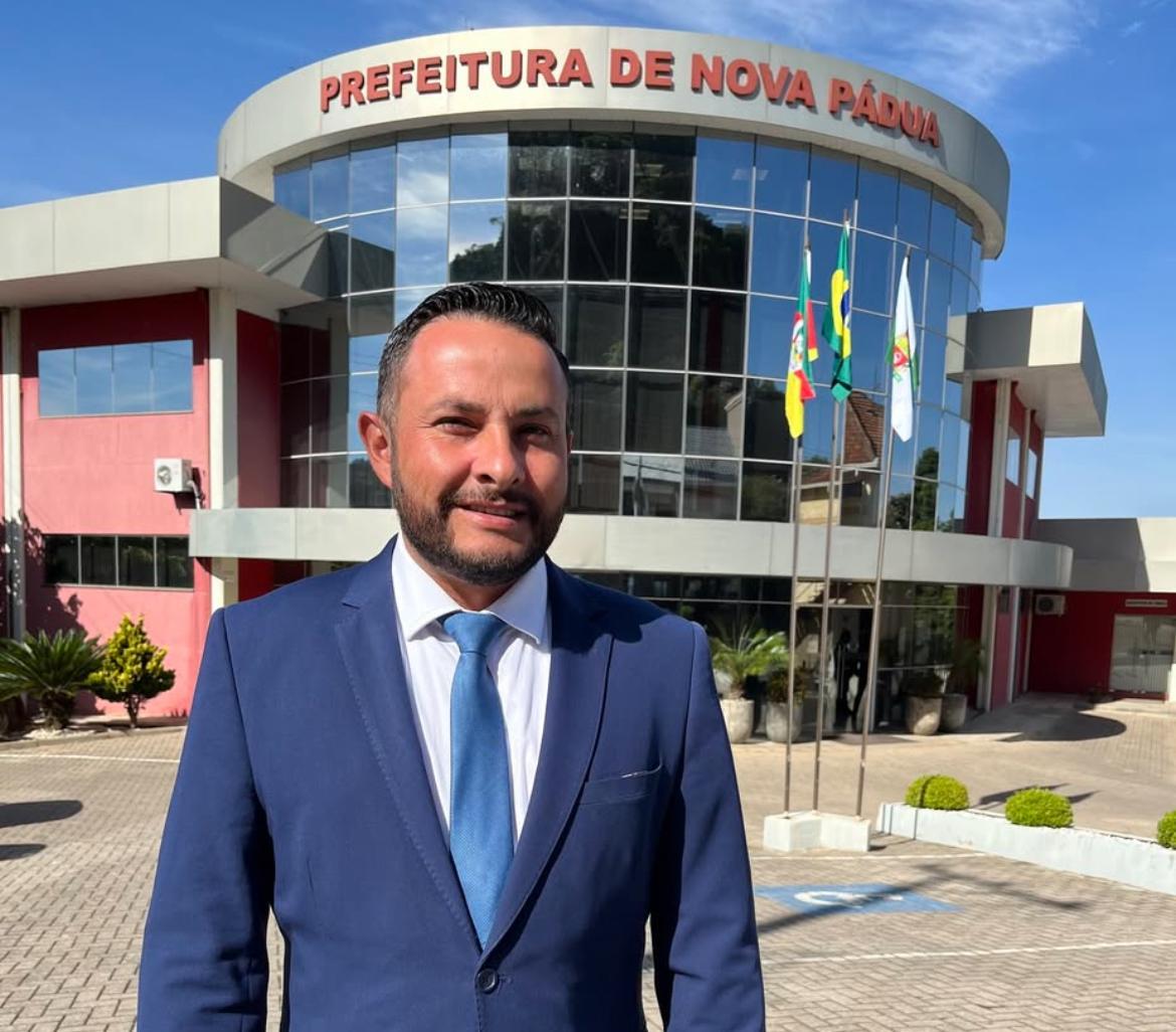 Vancarlos Oro, 40 anos, é servidor público há 15 anos e, neste mandato, assumiu a Secretaria de Agricultura de Nova Pádua. Durante sua trajetória, coordenou o transporte e os motoristas da Unidade Básica de Saúde (UBS), o que o aproximou da rotina e das demandas da população.