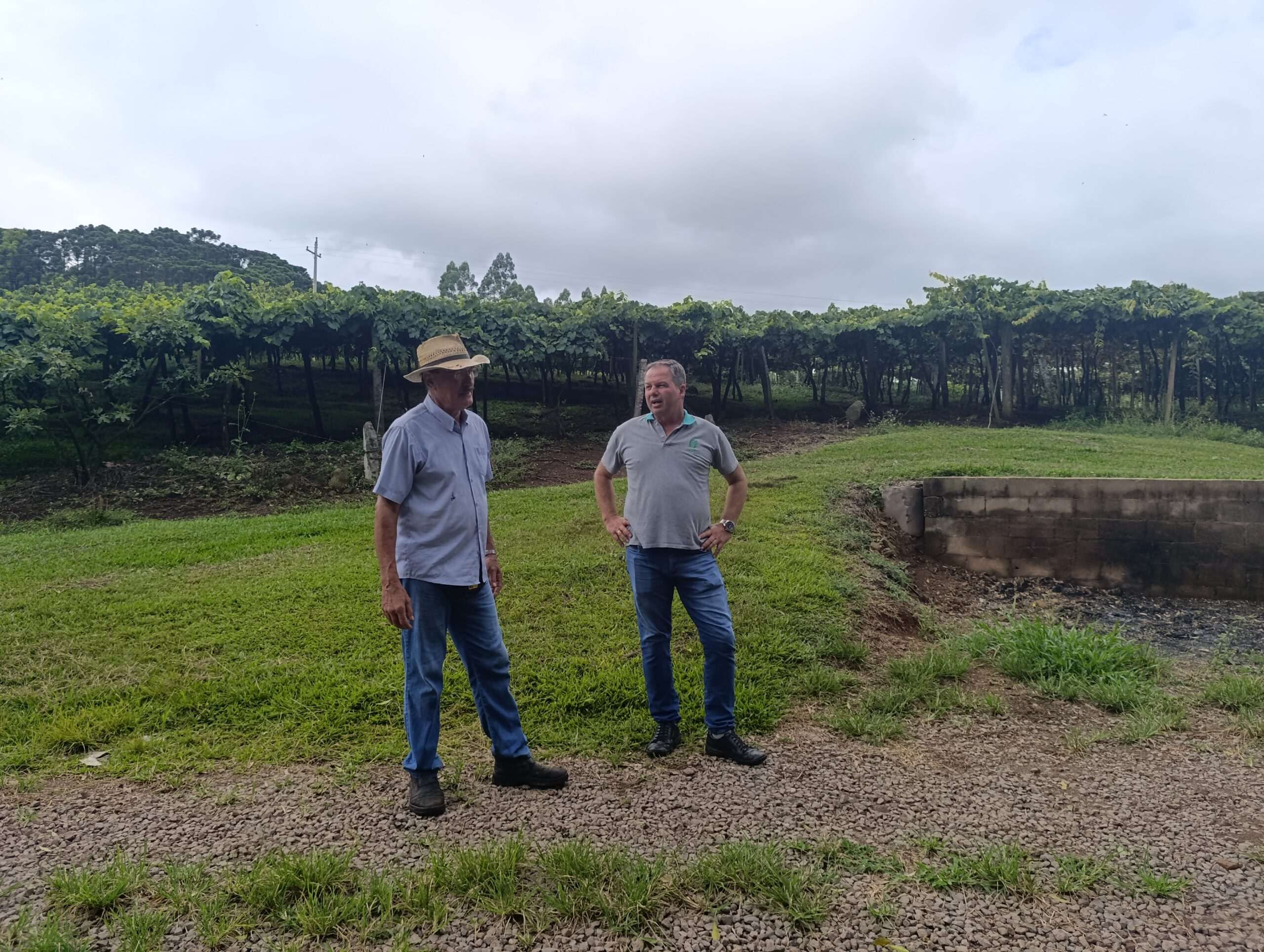 O agricultor Dorival Scortegagna conversa com o presidente do STR de Flores e Nova Pádua, Ricardo Pagno. (Foto: Karine Bergozza)