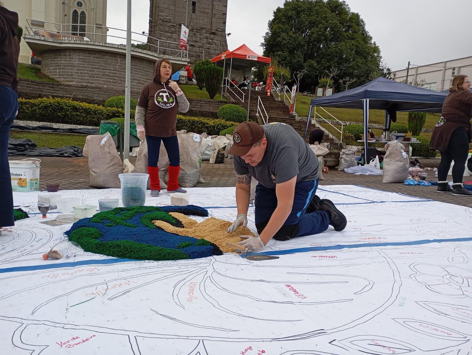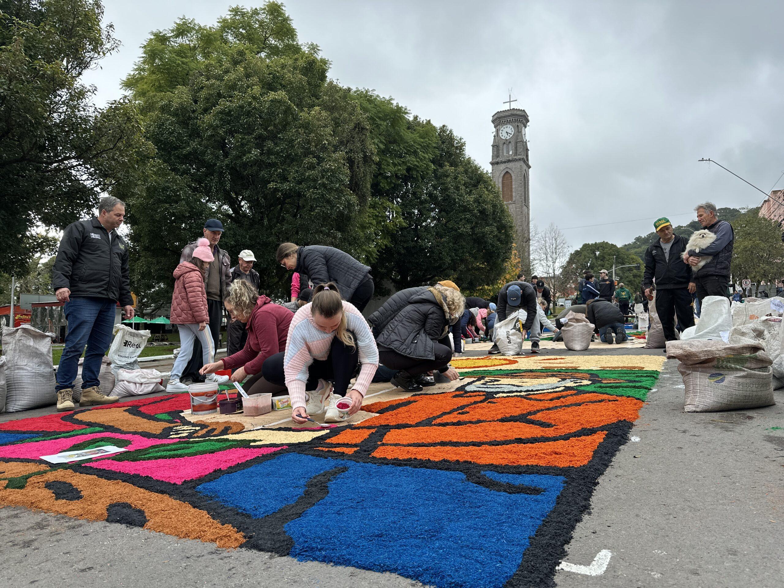 — Este ano tivemos que nos adaptar as condições climáticas. Está sendo um evento diferente. Ao mesmo tempo que temos a confecção dos tapetes, que envolve mais de 500 pessoas da comunidade, também teremos o Festival Vinhos e Menarosto, para receber os visitantes — afirma o secretário de Desenvolvimento Econômico, Turismo, Cultura e Inovação, Tiago Centenaro Mignoni.