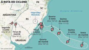 Veja a rota do ciclone (Foto: MetSul Metereologia, divulgação)