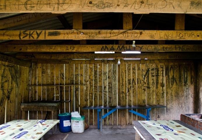Paredes internas das cabanas destinadas à confraternização de pessoas estão todas rabiscadas.