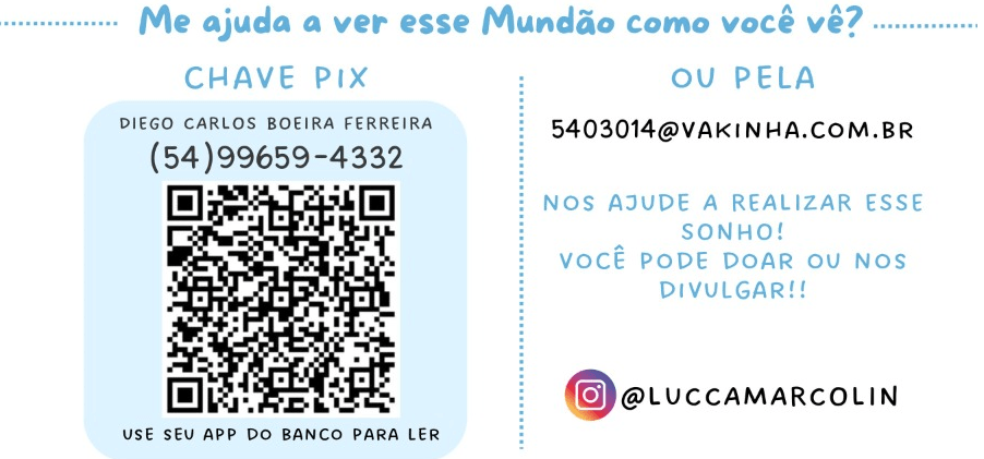 Para ajudar o filho na realização desse sonho, Patrícia e Diego criaram a campanha “Pelos Olhinhos do Lucca”. O público pode contribuir com a vaquinha solidária com doações: