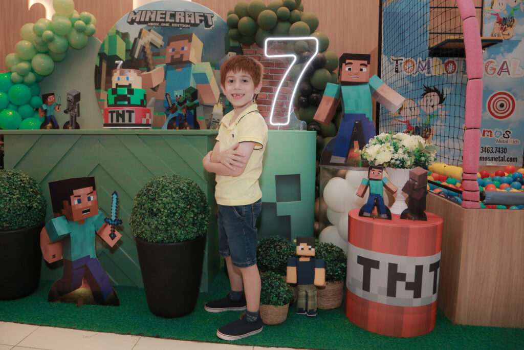 Festa temática para comemorar os 7 anos de Felipe Vecini Zanella, que recebeu o carinho dos pais Diego e Juscelaine e da irmã Luiza, na Balão Mágico.