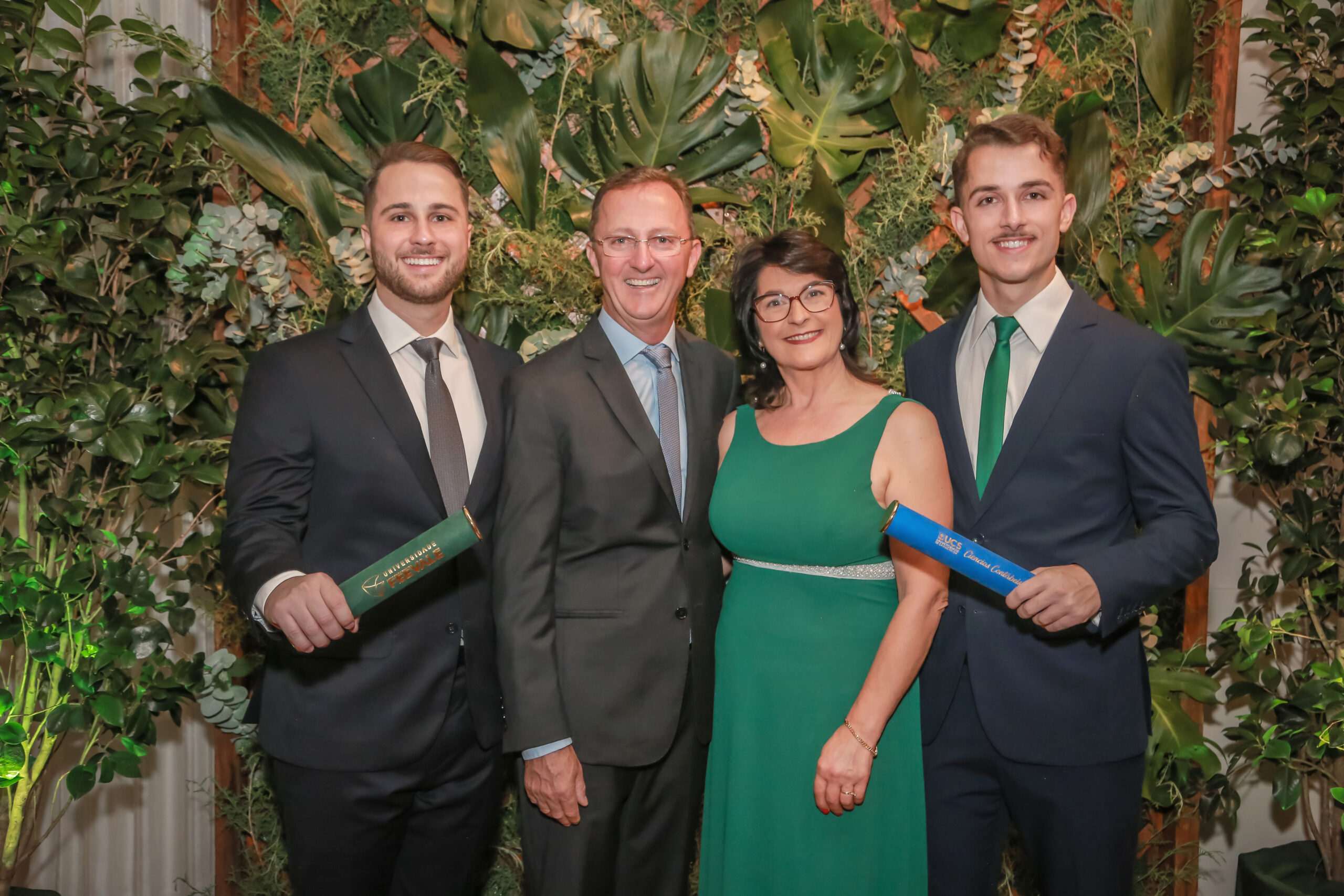 Os irmãos formandos João T. Scortegagna e Carlos T. Scortegagna receberam a homenagem dos pais Lídio e Beatriz, no Grêmio Esportivo Otávio Rocha. (Foto: Airton Nery e Rosa Nery, Divulgação)