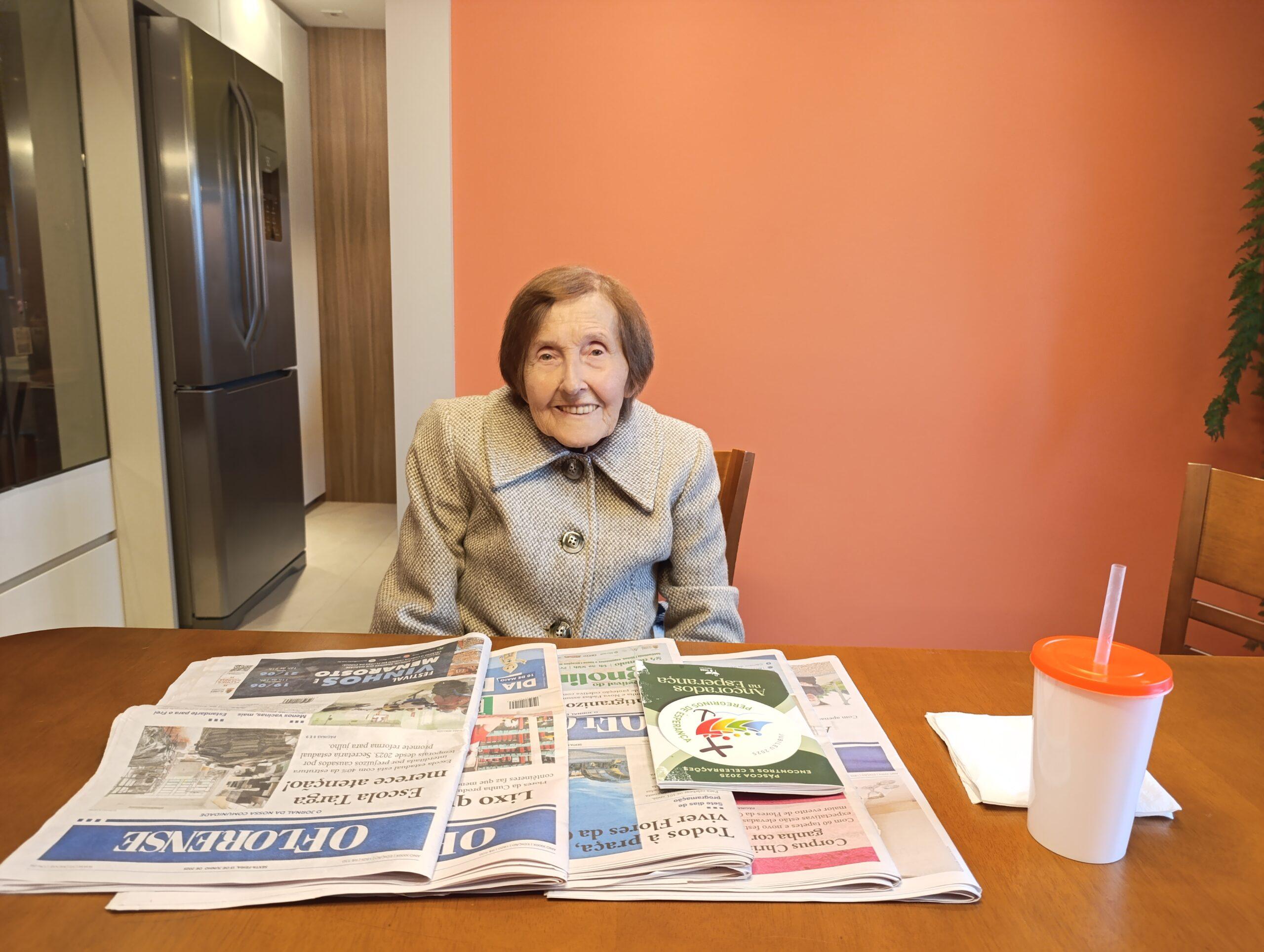 Zelinda reforça que quando está parada está lendo suas orações e que também adora ler o jornal O Florense.